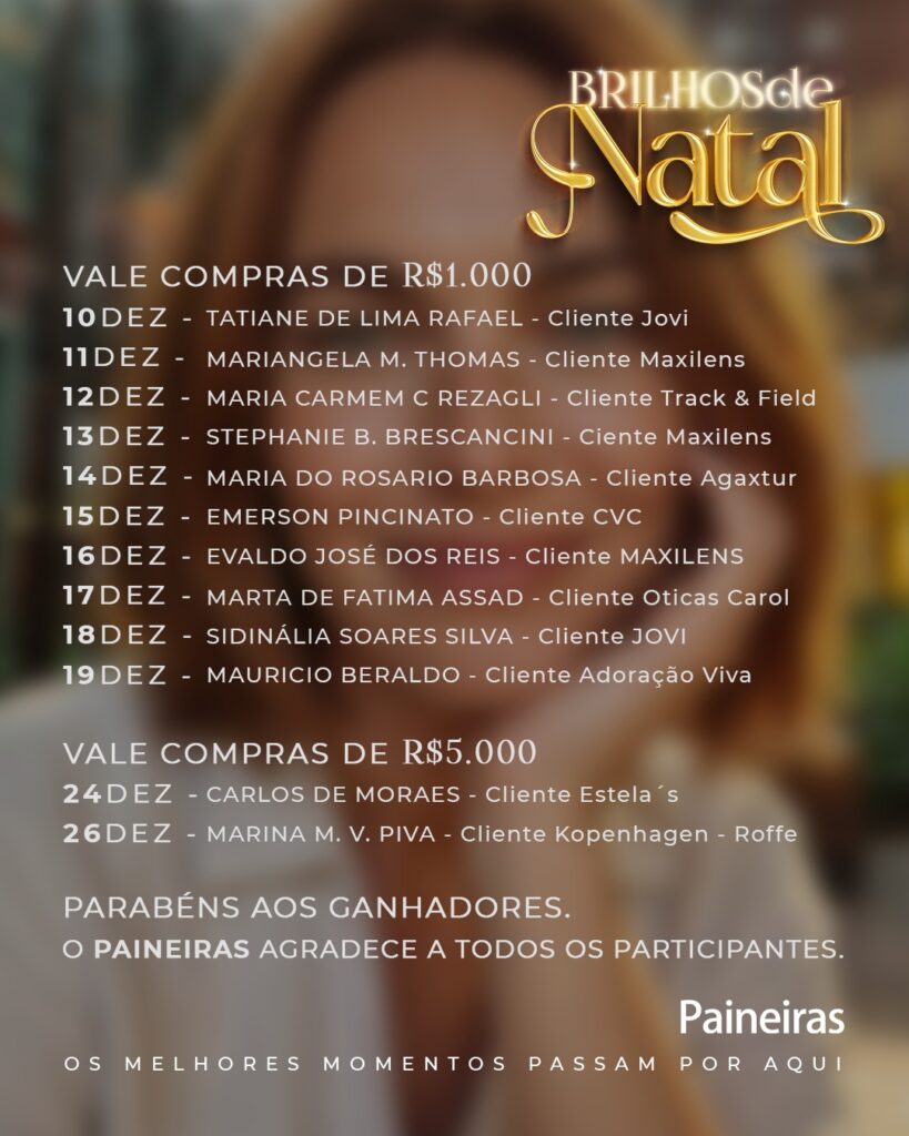 Confira abaixo os ganhadores dos vales-compra da Promoção de Natal do Paineiras: